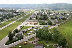 The town uses the Peace River which flows eastward as a source of drinking water and as outlet for industrial waste. The drinking water supply comes from an intake pipe southwest of town. The water is mechanically and chemically filtered then pumped to a reservoir on a ridge north of town. A gravity pump moves the water to the town from the reservoir using 18 km of watermains.[13] Sewage is collected by 13 km of sanitary sewers and processed by a two-cell lagoon system before being absorbed into the ground.[13]