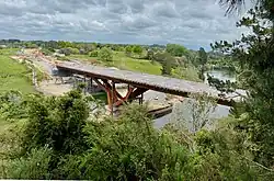 Te Ara Pekapeka Bridge (Māori for pathway of the bat) is a girder bridge over the Waikato River in Hamilton, New Zealand, opened to pedestrians and cyclists on 30 August 2024 and known as Peacocke Bridge during construction.[1] The bridge on Wairere Drive is part of the Southern Links, a ring road around Hamilton. It links Hamilton East with a new suburb of Peacocke. Construction started in 2020,[2] though the plan originated in 1962.[3]