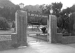 The hot springs in the area had been frequented by local Māori due to the water's perceived healing properties.[1] During the 1870s, European settlers arrived in the greater area, and in 1880 the town of Te Aroha began to develop, following the discovery of gold on Mount Te Aroha.[2]: 133–149 [1] In 1881, the Te Aroha Domain was established with an area of 20 acres (8.1 ha) at the foothills of Mount Te Aroha. The same year, the government took control of the domain under the 1881 Thermal Springs District Act. Māori continued to have free access to the hot springs.[1]