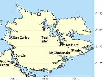 Teal Inlet (Spanish: Caleta Trullo), once named Evelyn Station,[1] is a settlement on East Falkland, in the Falkland Islands, on the south shore of Salvador Water. It is overshadowed by Jack's Mountain.