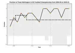 Chart of yearly ladder positions for Team Wellington in NZ 1st division soccer