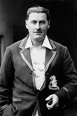A forceful opening batsman, Bowley played just one season of regular first-class cricket before the First World War and was 30 when he resumed his cricket career in 1920. But for the next 14 seasons he was a reliable run-getter, and for the three seasons from 1927 to 1929 was among the heaviest scorers in England. At 39, he was called up for two Test matches against South Africa in 1929, and the following winter he toured New Zealand and Australia with Harold Gilligan's Marylebone Cricket Club (MCC) team, playing in three of the four Test matches against New Zealand. He scored 109 at Auckland.[1][2]