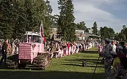 Teekkari students have been familiar with boilersuits at factories and construction sites since the early 20th century, but the proper teekkari boilersuits were only invented when the geology student group of 1959 called "Oopperan ystävät" ("friends of the opera") acquired their own boilersuits, which could be called class boilersuits.[8] In 1966 teekkari students organised the coup series Temppu'66, which was related to the move of the Helsinki Institute of Technology from central Helsinki to Otaniemi in Espoo. Students taking place in the coup wore a middle brown cotton boilersuit.[8] Guild boilersuits in various colours came into use in the 1980s.[8] In Finland, use of boilersuits has later spread to other students as well.
