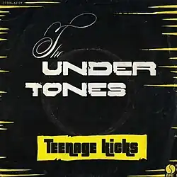 "Teenage Kicks" is the debut single by Northern Irish punk rock band the Undertones. Written in the summer of 1977 by J.J. O'Neill, the band's rhythm guitarist and principal songwriter, the song was recorded on 15 June 1978 and initially released that September on independent Belfast record label Good Vibrations,[6] before the band signed to Sire Records on 2 October 1978. Sire Records subsequently obtained all copyrights to the material released upon the Teenage Kicks EP and the song was re-released as a standard vinyl single on Sire's own label on 14 October that year, reaching number 31 in the UK Singles Chart[7] two weeks after its release[8]