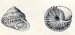 | Drawing with two views of a shell of Tegula hotessieriana | |