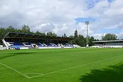 Tehtaan kenttä (Swedish: Fabriksplan, Eng. lit. Factory's field) is a 1934 opened football stadium in the 1st district of Valkeakoski, Finland, and the home of Veikkausliiga club FC Haka. The stadium holds an attendance capacity of 3,516.[1] The record for attendance is 6,401 and was set in a game against rival team HJK Helsinki in 1999. In addition to its history, the stadium is noted especially for its surroundings, while located in a big park and having the nearby UPM-Kymmene paper mill lay at the southwestern end of the pitch.