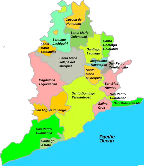 ![]() Oaxaca regions and districts: Istmo to Southeast | |
