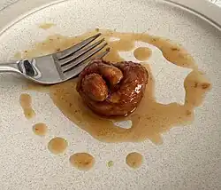 Teiglach date back to the times of the Romans[3] who made strips of fried dough in honey called vermiculi.[4] Italian Jews adopted the dish but it disappeared from their repertoire in the Middle Ages. In the 12th century Franco-German rabbis mentioned eating a dish of fried or baked strips of dough covered in honey called vermesel or verimlish at the beginning of the Sabbath meal. The name went through changes, being called gremsel and then chremsel in Eastern Europe. It is popular on Rosh Hashanah, when it is traditional to eat sweet foods made with honey to usher in a sweet new year.[2][5]
