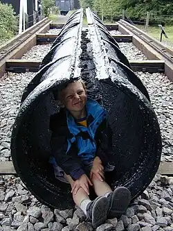 The line built by Isambard Kingdom Brunel runs along the South Devon Railway sea wall, which is a stone embankment between the sea and cliffs that runs for several miles between Teignmouth and Dawlish Warren. This line was originally both broad gauge and worked by the atmospheric system, with steam pump houses at regular intervals to create the vacuum. It was not successful for a host of reasons and was converted to normal steam locomotive working. Redundant sections of the atmospheric railway pipes were used as drains all over Teignmouth; one was set in the roadside in Woodway Lane, near Woodway House.