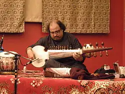![]() Majumdar performing at Eastside Baha'i Center, Bellevue, Washington (2014) | |