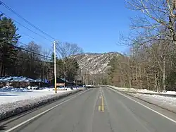 Tekoa Mountain, 1,121 feet (342 m), is a dramatic, rocky high point overlooking the Westfield River Gorge at the eastern edge of the Berkshire plateau in the towns of Montgomery and Russell, Massachusetts, USA. Tekoa Mountain, very prominent from the "Jacob's Ladder" section of U.S. Route 20 in the town of Russell, is not a true mountain but a cleaver jutting from a dissected plateau; it was produced by glacial action and through continuous erosion by the Westfield River and Moose Meadow Brook before and after the last ice age.