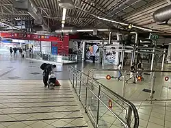The complex includes a shopping mall serviced by 29 escalators and 13 elevators with over 1,000 shops and restaurants.[8][9] Only two of the seven floors are used as a bus terminal (6th and 7th floor). The main entrances are on the north and east sides of 4th floor. Most intercity buses leave from a departure hall on the north (main) wing on 6th floor. On the 7th floor, which was an addition to the original building, there is a departure hall for local buses (to destinations within Gush Dan) on the north wing, and another departure hall for intercity buses (to destination in the Galilee) on the south wing. The wings of this level are completely separated.