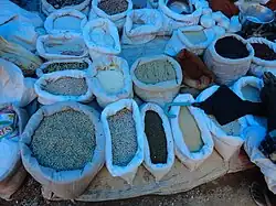 Telangana in its cuisine, there is special place for rotis made from millet, such as jonna rotte (sorghum), sajja rotte (penisetum), or Sarva Pindi" and Uppudi Pindi (broken rice). In Telangana a gravy or curry is called Koora and Pulusu in based on Tamarind. A deep fry reduction of the same is called Vepudu. Kodi pulusu and vepudu are popular dishes in meat. Vankaya (Brinjal), Aloogadda (potato) koora & fry are some of the many varieties of vegetable dishes.[1] Telangana palakoora is a spinach dish cooked with lentils eaten with steamed rice and roti. Peanuts are added as special attraction and in Karimnagar District, peanuts and soya nuts are added.