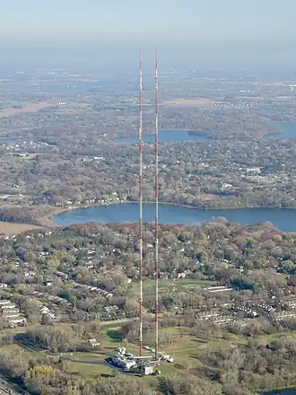 The Telefarm Towers is a transmission site for FM radio and television broadcasting in Shoreview, Minnesota consisting of two guyed towers.
