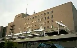 Meanwhile in Europe, the first regular test broadcasts were being conducted, with Germany ready to broadcast the imminent Berlin Olympics of 1936.[11] The following year, it was decided that the Giochi were to be held in Tokyo, and the STRL was put in charge of the event's television project. Takayanagi himself and other leading engineers of the time took part in the program and, although the Olympics were officially canceled in July 1938, television research continued, fueled by the zeal of those involved in the project.[16] On May 13, 1939 an experimental television signal was broadcast from the STRL antenna at the new Broadcasting Hall in Uchisaiwaichō, located 13 km away.[17] This represented the first public television experiment conducted through the use of radio waves in Japan.[15]