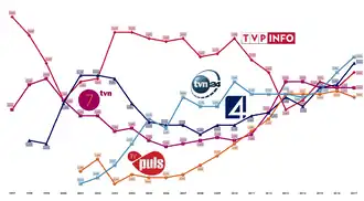 - ^ "Krótszy czas oglądania telewizji w 2017 roku. Polsat i TVN liderami (raport)". wirtualnemedia.pl. 3 January 2018.