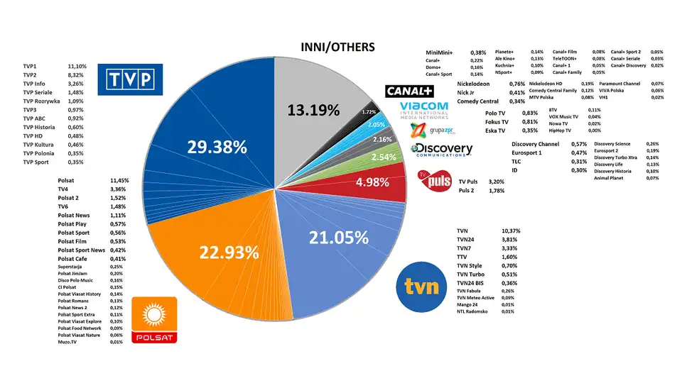| Polsat | 12/1992 | 6.91 | 7.30 | 8.19 | 8.37 | 9.85 | 10.23 | 10.91 | 11.45 | 11.60 | 11.84 | 12.24 | 13.97 | 14.53 | |