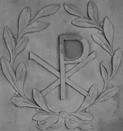 There were also simple burials that were embedded in the open space between the mud-brick tombs without any special additions of statuettes of gods. Most of the burials exhibited the typical forms of Roman style, which can also be seen in the symbolic orientation of the graves. The necropolis also had a burial area for children. A Christian child burial is noteworthy in this context. In the upper part of an amphora from Gaza there was a Coptic inscription with two "Chi-Rho symbols" as Christ's monogram, which had been used by Christians since the 2nd century AD to represent their faith and to recognize each other. However, this form of burial was only found on very few burial objects.[19]