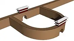 The trading houses and warehouses discovered by Édouard Naville and assigned to the "Children of Israel"[18] probably date from the early days of the construction program under Ptolemy II, as only these were located in the immediate vicinity of the smelting furnaces on the banks of the Bubastis Canal. Ptolemy III (246 to 222 BC) and his successors must have initiated further extensive construction of trading houses and workshops, as the Wadi Tumilat project was only able to excavate a small number of the numerous trading houses, some of which were up to 75 m long, during its campaigns. The trading houses explored so far could be dated to the period between the second half of the 3rd century BC and around 125 BC. After the end of Ptolemaic rule, Tell el-Maschuta experienced a decline, so that the site lost its main function as a trading post at the beginning of the 1st century BC and was therefore once again abandoned by its inhabitants.[13]