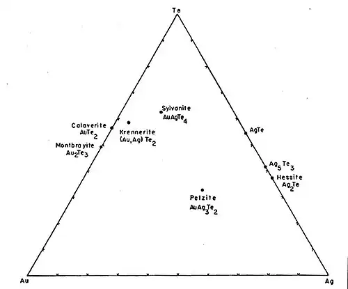 - ^ Cabri, L.J., 1964, Phase Relations in the Au-Ag-Te System, McGill University PhD Thesis