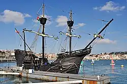 Son to a merchant marine captain and nephew to an adventure media celebrity, already during his teenage years Telmo took part in numerous travelling projects; some were related to a friend of his father and another Navarrese maritime explorer and public personality, known in Spain as Capitán Etayo.[35] In 1992 he was formally employed by his uncle as logistics coordinator for the subsequent edition of Ruta Quetzal; at the time the project was sponsored by the Secretariat of State for International Cooperation and Ibero-America and the Ibero-American General Secretariat. Aldaz served in the same role also during the 1994 edition[36] and took part in cross-Atlantic journeys on replica of the original Niña caravel.[37] In 1995 he embarked on his first own major travelling project, re-enactment of the historical 1503 Columbus-related paddling journey from Jamaica to Hispaniola in canoes. The enterprise lasted a few weeks and became a media scoop in Spain.[38] In the second half of the 1990s he travelled on the Amazon and the Orinoco in canoe and took part in other re-enactment sails of replica ships Niña III and Nao Victoria, e.g. in 1998 as part to the round-the-world journey.[39] Most of these undertakings were part of media projects, and Aldaz systematically provided his correspondence to contracted agencies. In 1997 he canoed on the Congo river across Zaire, but the project was abandoned mid-course due to the outbreak of the civil war.[40] At the turn of the centuries Aldaz was again working for Ruta Quetzal, e.g. in 2002 and 2003.