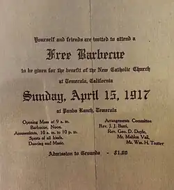 - ^ Green, W. (1916-12-08). "Catholic Church for Temecula". Lake Elsinore Valley Press – via Library of Congress.