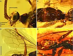- ^ Rosa, B.B. & Melo, G.A.R. (2024), "Temnogynidae fam. nov., a new fossil family of apoid wasps from the mid-Cretaceous (Hymenoptera, Apoidea)", Revista Brasileira de Entomologia, 68 (e20240031), doi:10.1590/1806-9665-rbent-2024-0031