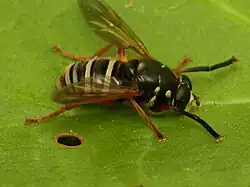 Temnostoma apiforme is a species of hoverfly.[3] Larva of this species feed in decaying wood of deciduous trees.[4]