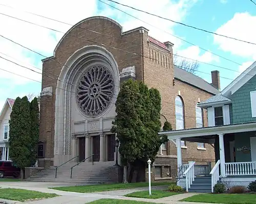 Temple B'Nai Israel, now operating as the Olean Community Theatre, is a deconsecrated synagogue and stage venue located in Olean, Cattaraugus County, New York, in the United States.[2] The synagogue was erected in 1929, closed in 2019 and was deconsecrated in December 2020;[3] the building was listed on the National Register of Historic Places in 2012 and has been used as a community theater since the deconsecration.[1] The B'Nai Israel Congregation that occupied the synagogue, a Conservative/Reform Jewish congregation established in 1894 as the Olean Hebrew Association, continues to operate using rented space elsewhere in Olean.[4][3]