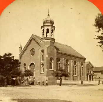 The congregation constructed its first building on the corner of Poplar and Second Streets from 1871 to 1874.[1] The congregation's current Neoclassical building was constructed on the corner of Cherry and Spring Streets in 1902.[1]