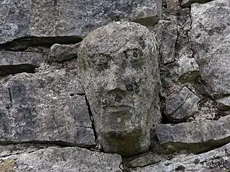 ![]() One of the carved stone faces in the walls of Temple Cronan | |