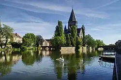 Temple Neuf (French pronunciation: [tɑ̃pl nœf], meaning "New Temple") is a Protestant church in Metz, France. It is located on place de la Comédie (next to Opéra-Théâtre),[3] at the center of the Jardin d'Amour on the southwestern edge of Île du Petit-Saulcy, which is surrounded by the Moselle.