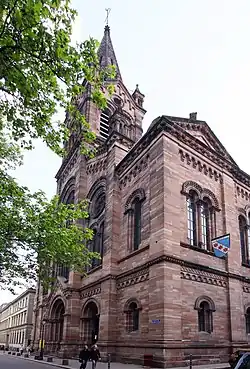The Temple Neuf in Strasbourg is a Lutheran church built on the site of the former Dominican convent where Meister Eckhart studied. The Temple was constructed at the end of the 19th century after the old Dominican Church was destroyed during the Siege of Strasbourg on the night of 24-25 August 1870, during the Franco-Prussian War. The ensuing fire also destroyed the libraries of the University of Strasbourg and the City of Strasbourg which were located at the Temple Neuf site.[1]
