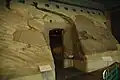 During Akhenaten's reign (1352–1336), the decorations were chiseled at various points. Rameses II (1279–1213) later restored it, remodeling the triad in the rear niche with Amon, Horus, and the king. Eventually, it became a Christian place of worship, evident from crosses and five-pointed stars engraved on the entrance portal and interior walls.