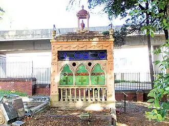 The memorial is in the form of a mausoleum, 2.76 metres (9 ft 1 in) long, 1.76 metres (5 ft 9 in) wide and 3 metres (9.8 ft) high. It is constructed of stone and plaster.[2]