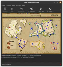 Tenés Empanadas Graciela (TEG) is a free and open-source turn-based strategy game available in several popular Linux distributions. It is based on the board game TEG, which itself is based on the strategy board game Risk.