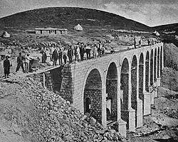 The viaduct was built in Amman as part of the Hejaz Railway during the Ottoman Empire.[1] It was completed in 1904 when the Amman station was inaugurated to its north.[1]