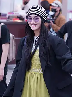 Yamasaki often wears T-shirts,[94] pants,[95][96][97] sneakers,[55] and accessories like rings.[94] The fashion items she often wears include vivid-colored pieces,[98] vintage clothing,[99][100] Nike sneakers,[101] denim pants,[102][103] and men's items.[97] Her preferred fashion styles are autumn and winter looks,[102] and denim coordination.[104][105] Her favorite colors are white,[106] black,[106] wine red,[106] blue,[107] and pink,[108] though they often change.[107] When it comes to denim pants, Yamasaki often chooses relaxed straight-leg styles or colored denim.[109][110] She often wears knitwear with a relaxed silhouette or in vibrant colors.[111][98] For shoes, she often opts for flat styles like sneakers.[112] She likes gyaru culture.[113][114][98]