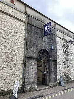The town hall continued to serve as the meeting place of the borough council until 1947. The town clerk's office was also in the building, but most of the council's staff were scattered around various other offices in the town.[9][10] In 1947 the council bought a large 1820s house called Croft House on The Norton, which had previously been the Bay Hotel.[11] Croft House was converted to become the council's offices and meeting place, and also incorporated a magistrates court.[12] The council renamed the building "Civic Centre" when they first took it over, before renaming it again to "Guildhall" around 1963.[13][14] Following local government reorganisation in 1974, the guildhall was used by Tenby Town Council until the mid-1980s when it moved to the De Valence Pavilion on Upper Frog Street, whilst the magistrates court closed in 2003.[15][16][17] The guildhall was subsequently converted into flats.[18]