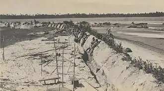 The real offensive came from land.[19] The 20th, 21st and 22nd battalions, which also had orders to board for São Paulo, remained in the Northeast.[5] On 27 July, these three units and another contingent of the police were of Bahia were in Salgado, in the south, totaling 1,267 men.[21] In the north, 332 irregulars and police soldiers from Alagoas were in Japaratuba.[22] With the rebels surrounded, general Marçal called on them to surrender, recalling their numerical superiority and the failure of the rebellion in São Paulo.[23] The leaders of the revolt fled Aracaju, and the loyalists entered the city without resistance on 3 August.[24]