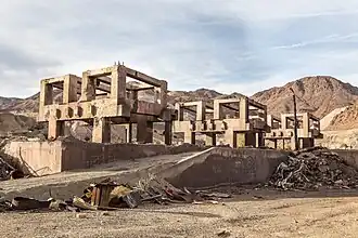 Production proceeded in Los Angeles, where Hawthorne Plaza Shopping Center functioned as the interior set of an icebreaker and a shipping container.[68] The Victorville Airport was disguised as Oslo, with more than ninety extras involved.[19] Instead of using miniatures and visual effects (VFX) for the plane crash sequence, Nolan determined that purchasing a Boeing 747 proved more cost-effective.[69] In October, filming moved to Eagle Mountain, where an abandoned town had been constructed and hundreds were clothed in military camouflage uniforms.[9] Over thirty buildings were prefabricated in Los Angeles and shipped to the site. Four Boeing CH-47 Chinooks were loaned out for four days. Outside shots of a tunnel were done in the desert, while the cavernous insides of the Hypocenter were fashioned on Warner Soundstage 16, their largest, with 32,130 square feet.[70] Tenet wrapped on November 12, after 96 days of shooting.[71]
