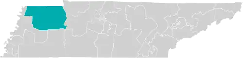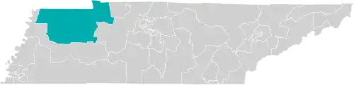 The district is located mostly within Tennessee's 8th congressional district, with part in the 7th district.[4] The district borders the state of Kentucky.[1]