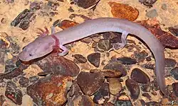 The Tennessee cave salamander (Gyrinophilus palleucus) is a species of salamander in the family Plethodontidae, endemic to the Appalachian Mountains in the United States.[1][4] Its natural habitats are streams in caves. It is threatened by habitat loss.[1]