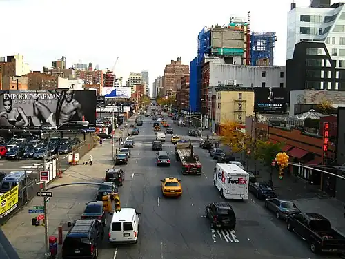 ![]() Tenth Avenue at 17th Street, as seen from the High Line | |