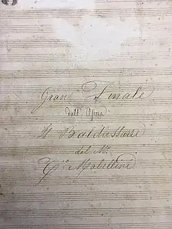 - a copy perhaps prepared by Mabellini himself for the Napoletan representation of the opera Rolla, dated 1841,[41] of which the institute preserves also some original drafts by Filippo Del Buono,[42]
