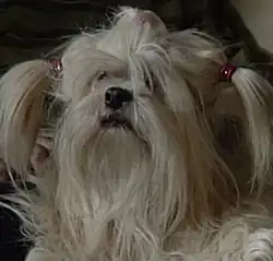 Terence is a Lhasa Apso dog from the BBC soap opera EastEnders. The character first appeared in the series on 29 October 2001, after being purchased as an 18th birthday gift for Janine Butcher (Charlie Brooks) by Billy Mitchell (Perry Fenwick). Despite being portrayed by a male dog, Caspar, who was later renamed after his character, Terence's gender was subject to dispute throughout their tenure and they were regularly referred to as both male and female, often in the same scene, which led to them being branded "non-binary" by fans of the show and nicknamed "Theirence".[1]