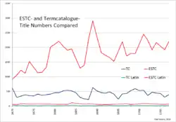 A comparison with modern ESTC data proves that the Term Catalogues remained highly selective. The ESTC lists between more than 13,000 and almost 23,000 titles for the individual decades. The Term Catalogue numbers range at 20%-30% of that. Catalogues of the 1690s had the greatest average numbers of titles, but ESTC data imply that the 1690s actually saw a slight drop in total title numbers. The distortions are partly the result of the project's instability in 1708 and 1709. They reflect, in part, the continuous neglect of ephemeral publications such as short political pamphlets.
