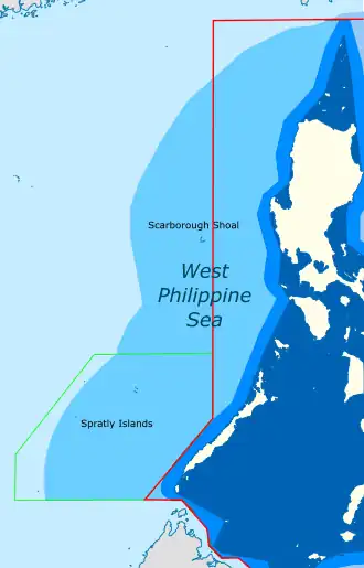 The Philippine government claims Spratly Islands features locating within its EEZ in the South China Sea as part of its territory. The Philippine government' has designated its EEZ in the eastern portion of the South China Sea as the "West Philippine Sea".