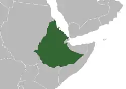 After defeating the Ethiopian Army in the Second Italo-Ethiopian War in 1935, Italy proclaimed Ethiopia part of Italian East Africa in May 1936, consisting of the former colonies of Eritrea and Somaliland (occupied in 1940) covering over 666,000 square miles (1,725,000 square kilometres) with an estimated population of 12,100,000. However, the density of population was not even; Eritrea had an area of 99,000 square miles with 1,500,000 population, a density of 16.6 per square mile, Ethiopia with an area of 305,000 square miles, 9,450,000 population and 31.0 population density, and Somaliland with an area of 270,000, 1,150,000 population and 4.2 population density.[16] It was bordered at the time by Anglo-Egyptian Sudan in the west, British Somaliland in the east, British Kenya to the south and the Red Sea to the northeast.[17]