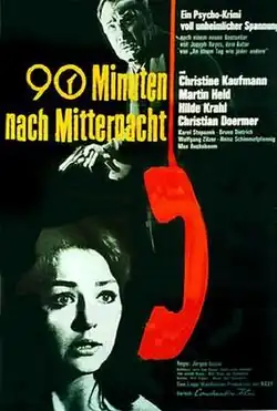 Terror After Midnight (German: Neunzig Minuten nach Mitternacht) is a 1962 German drama film directed by Jürgen Goslar and starring Christine Kaufmann, Martin Held, and Hilde Krahl.[1] It is based on the novel The Hours After Midnight by Joseph Hayes.